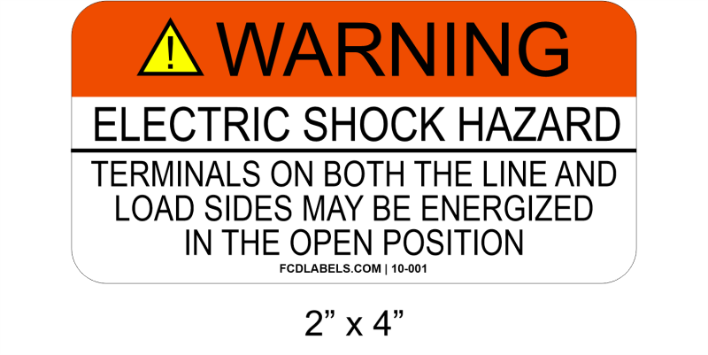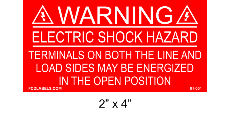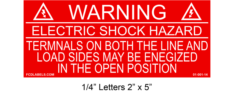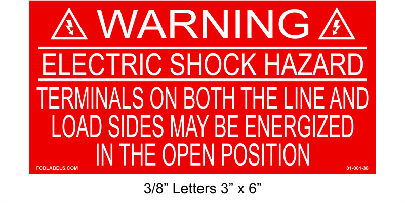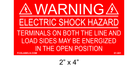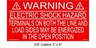 WARNING! ELECTRIC SHOCK HAZARD - TERMINALS ON BOTH THE LINE AND LOAD SIDES MAY BE ENERGIZED IN THE OPEN POSITION