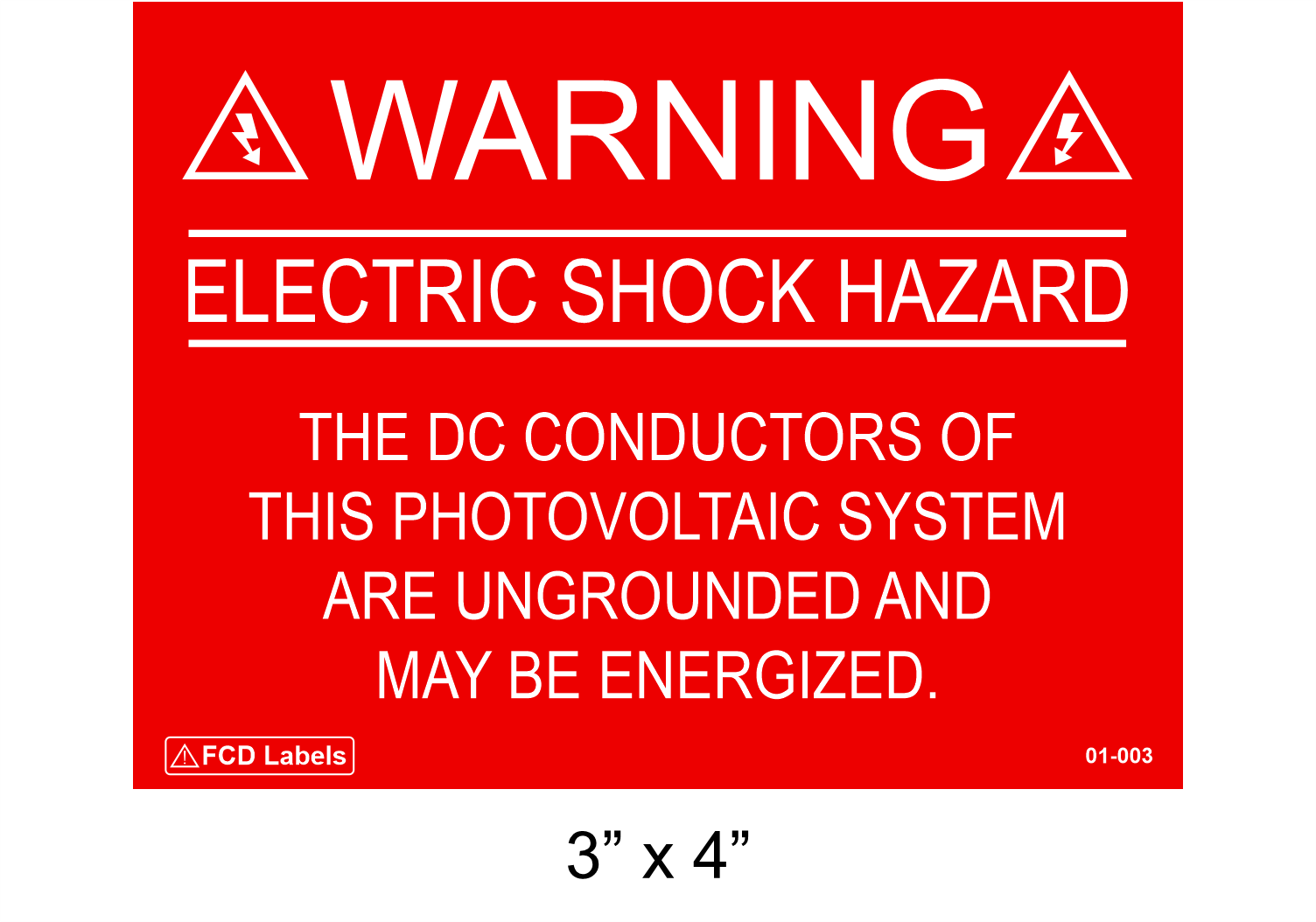 WARNING! ELECTRIC SHOCK HAZARD - THE DC CONDUCTORS OF THIS PHOTOVOLTAIC SYSTEM ARE UNGROUNDED AND MAY BE ENERGIZED