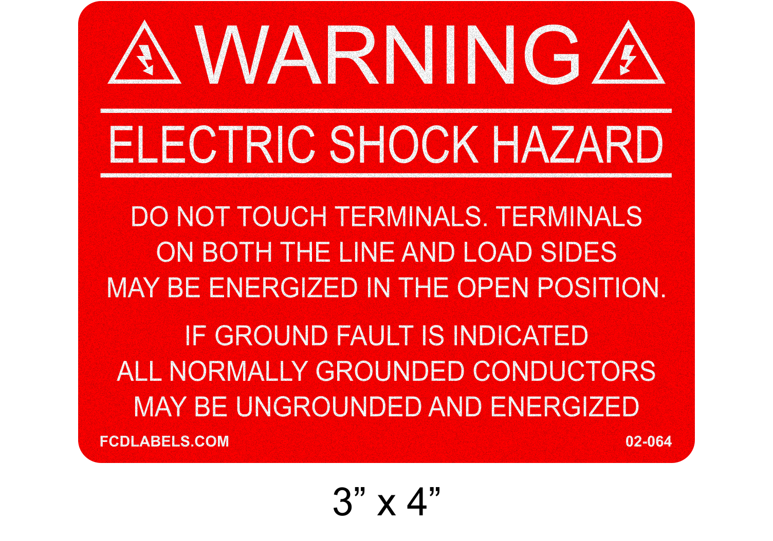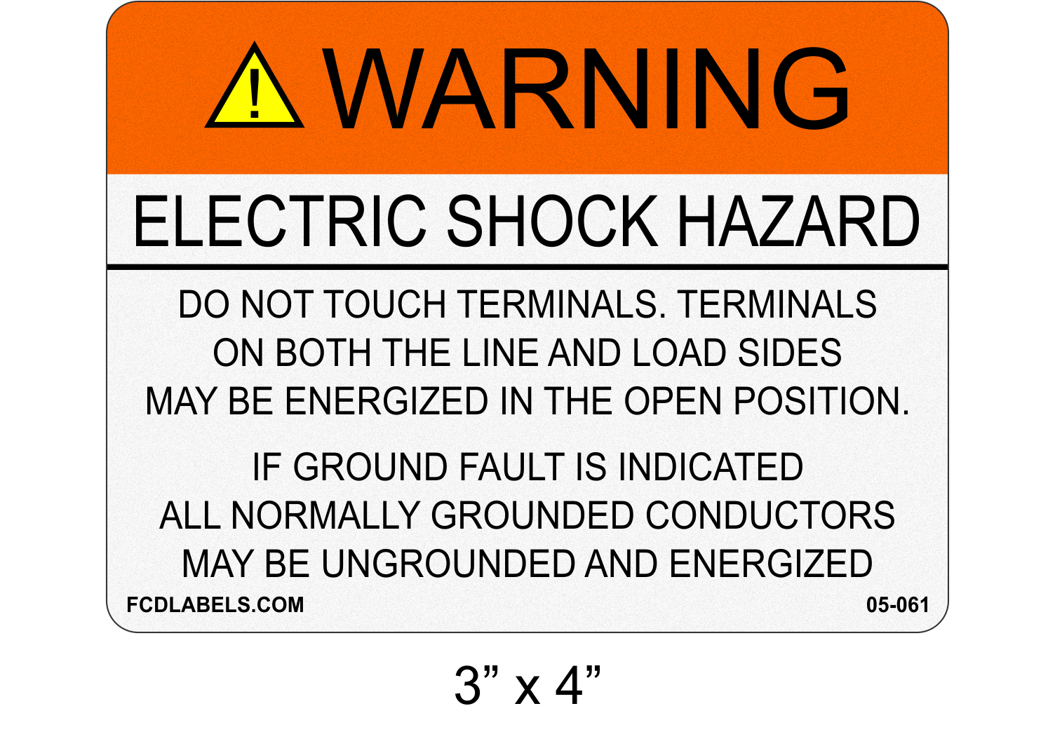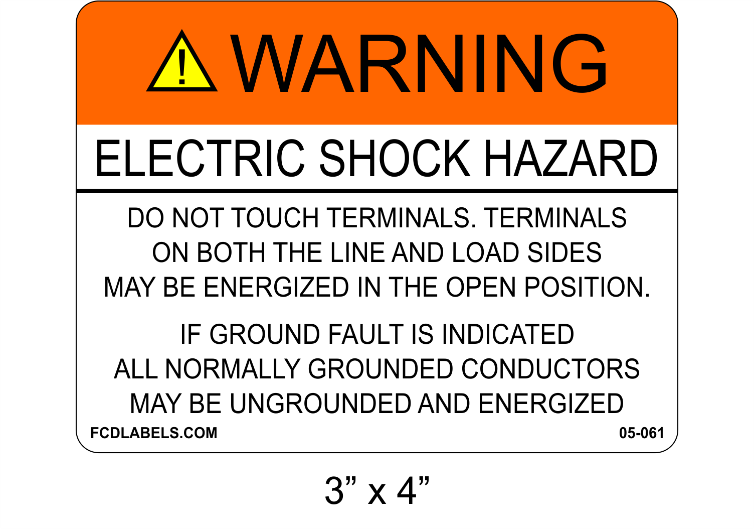 WARNING ELECTRIC SHOCK HAZARD. DO NOT TOUCH TERMINALS. TERMINALS ON BOTH THE LINE AND LOAD SIDES MAY BE ENERGIZED IN THE OPEN POSITION. IF GROUND FAULT IS INDICATED ALL NORMALLY GROUNDED CONDUCTORS MAY BE UNGROUNDED AND ENERGIZED.