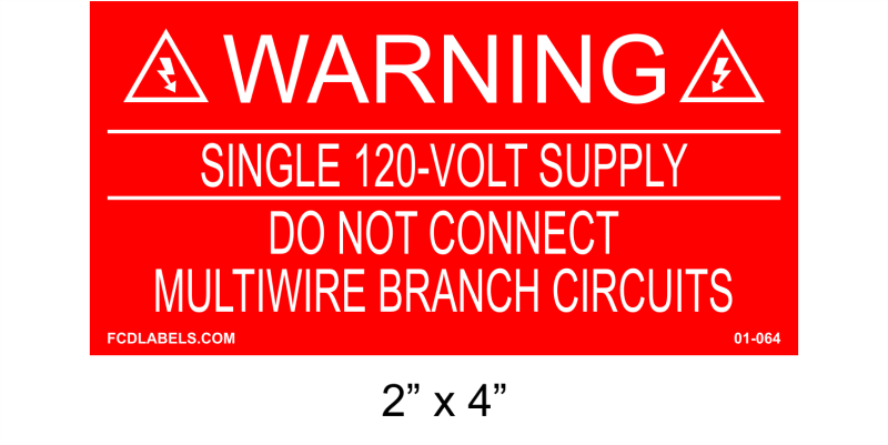 WARNING SINGLE 120-VOLT SUPPLY. DO NOT CONNECT MULTI-WIRE BRANCH CIRCUITS