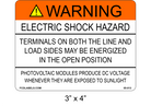Warning electric shock hazard. Terminals on both the line load sides may be energized in the open position. Photovoltaic modules produce DC voltage whenever they are exposed to sunlight