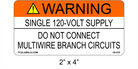 WARNING. SINGLE 120-VOLT SUPPLY. DO NOT CONNECT MULTIWIRE BRANCH CIRCUITS