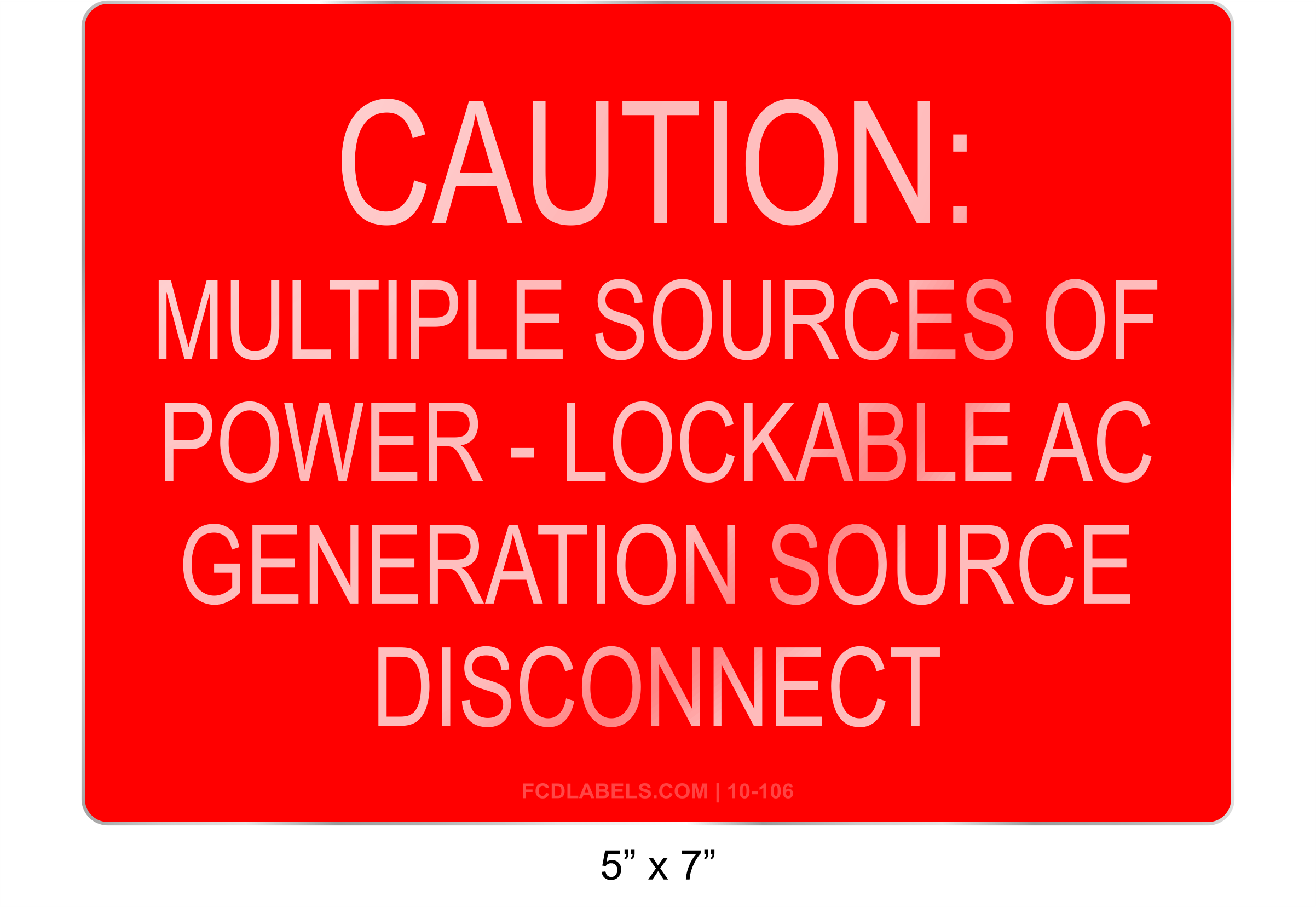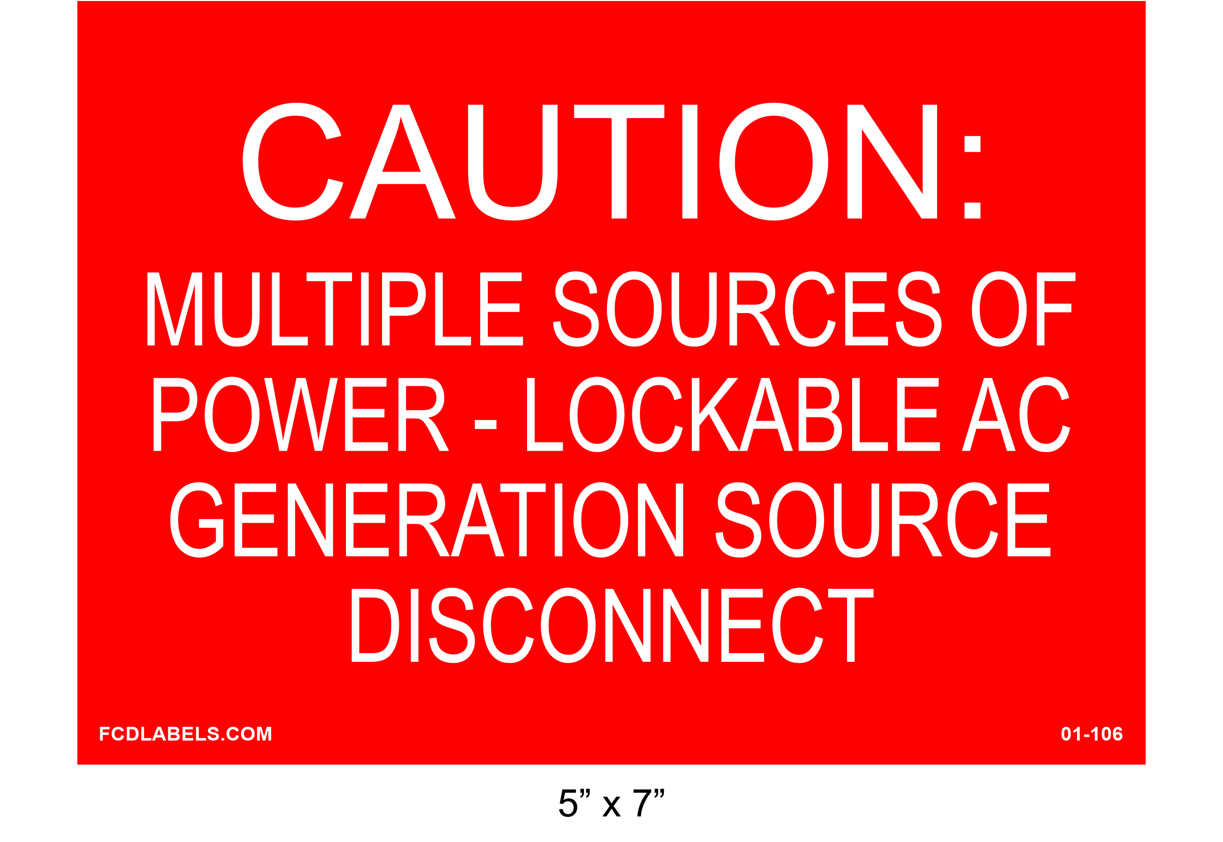 CAUTION: MULTIPLE SOURCES OF POWER - LOCKABLE AC GENERATION SOURCE DISCONNECT