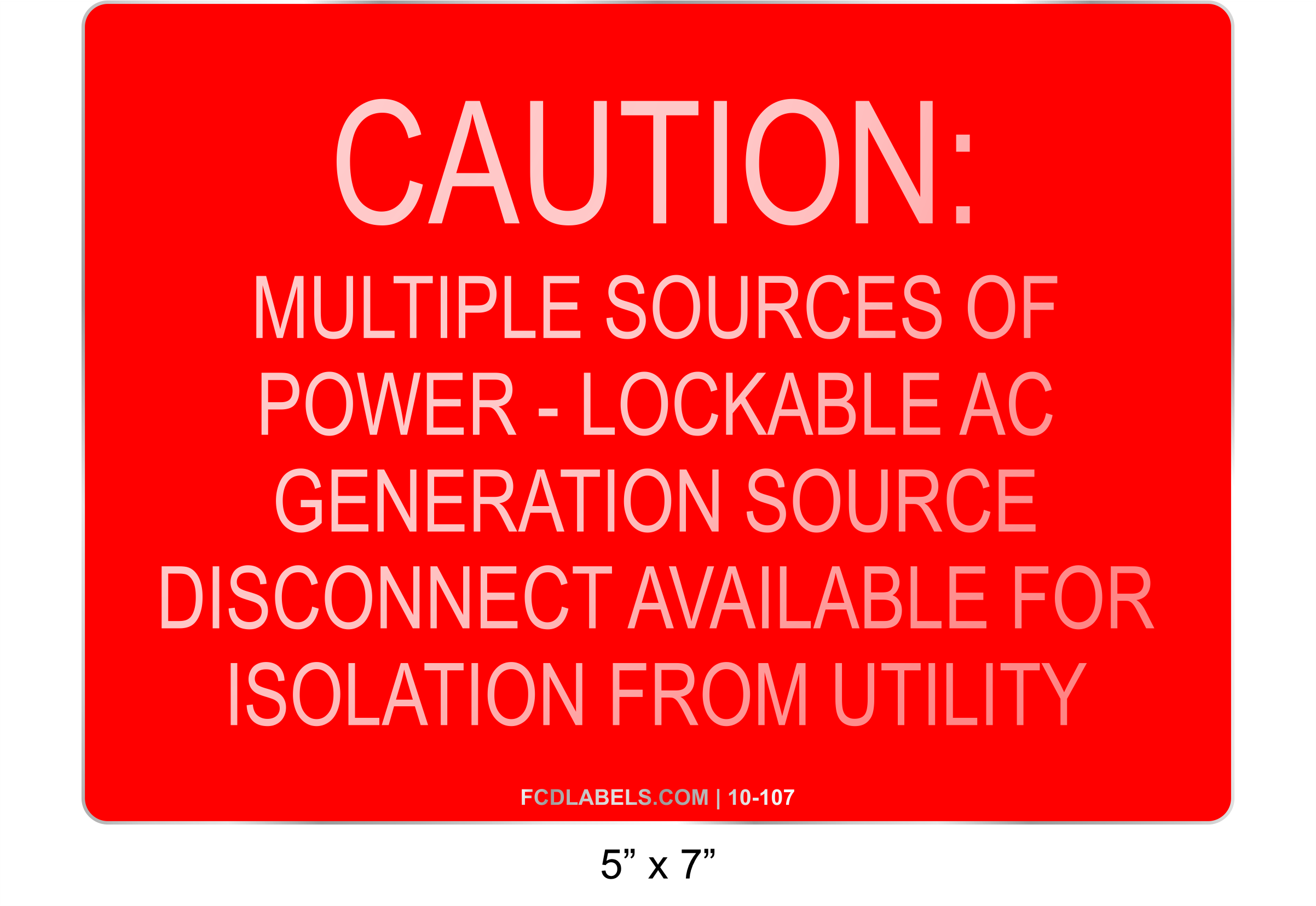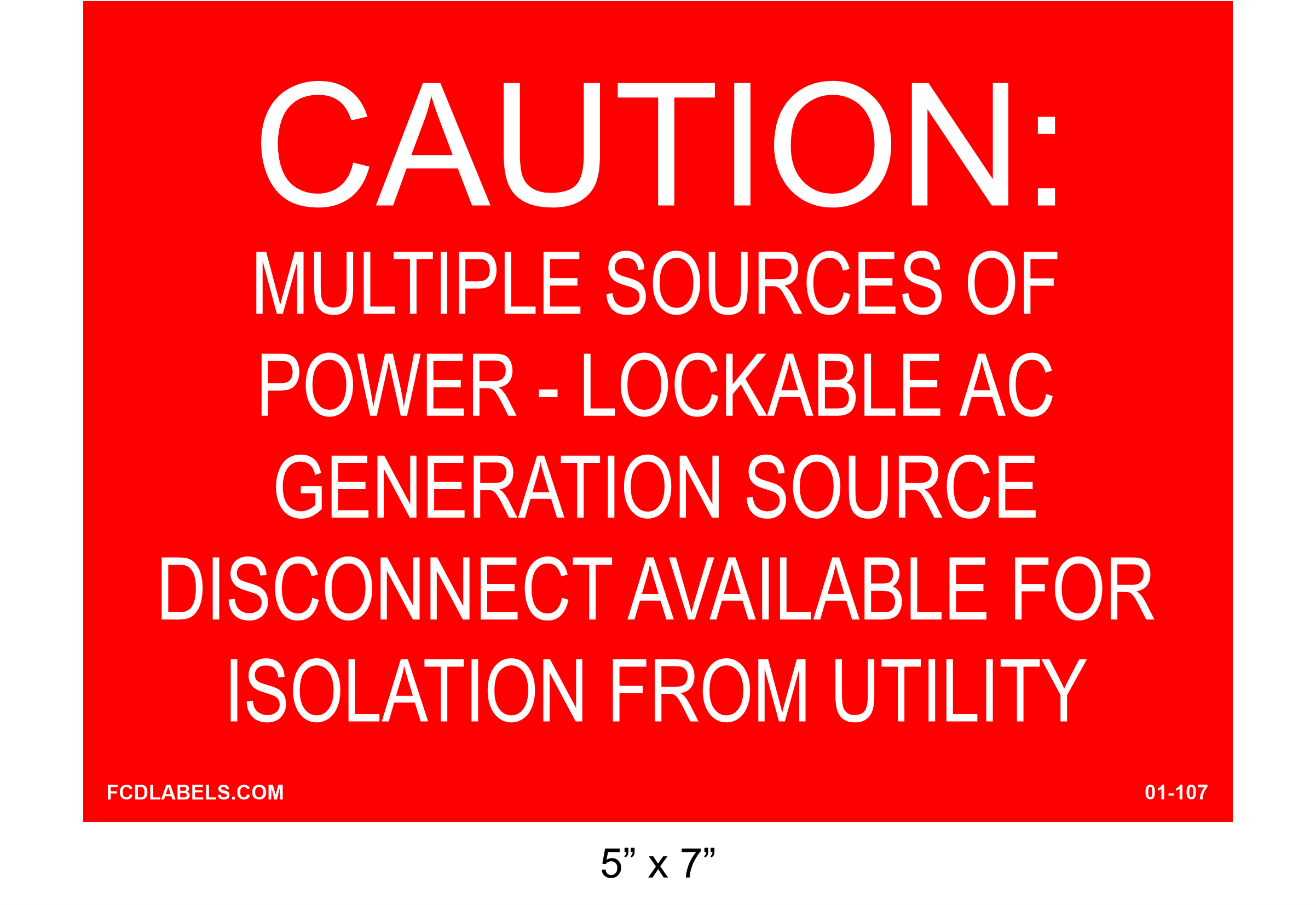 CAUTION: MULTIPLE SOURCES OF POWER - LOCKABLE AC GENERATION SOURCE DISCONNECT AVAILABLE FOR ISOLATION FROM UTILITY