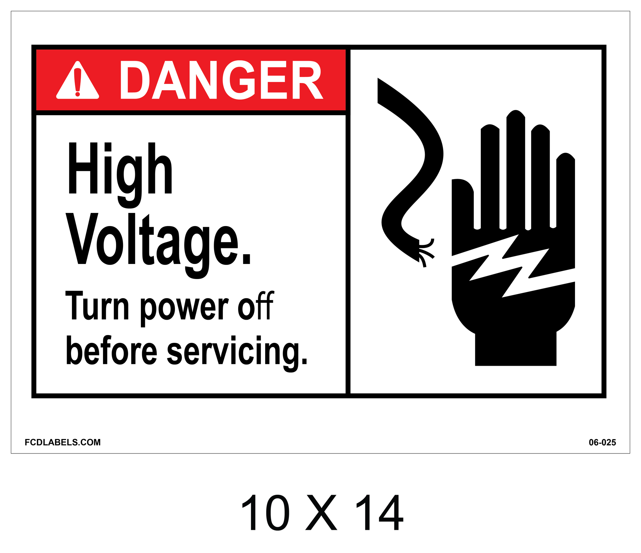10x14 Aluminum Sign - DANGER High Voltage. Turn power off before servicing. hand signal-01