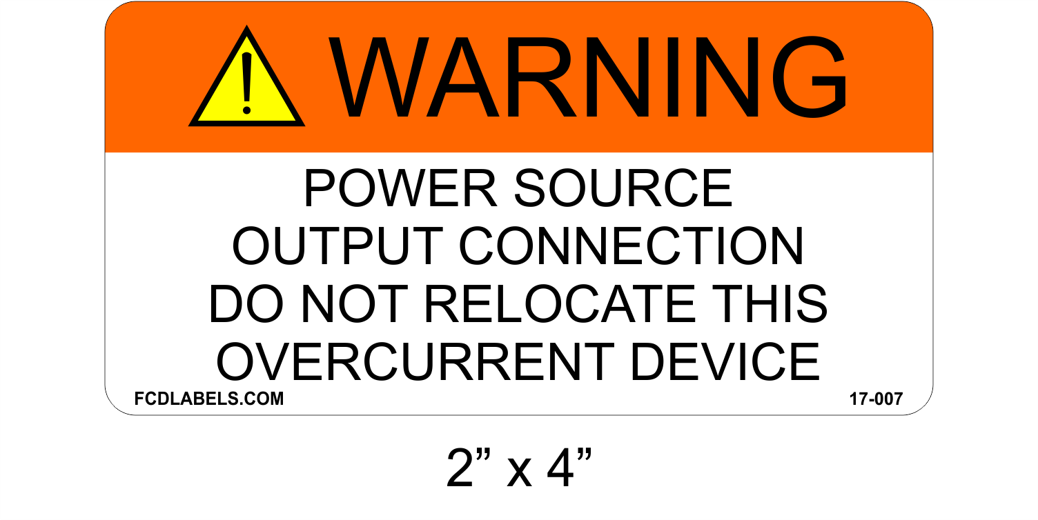 POWER SOURCE OUTPUT CONNECTION DO NOT RELOCATE THIS OVERCURRENT DEVICE
