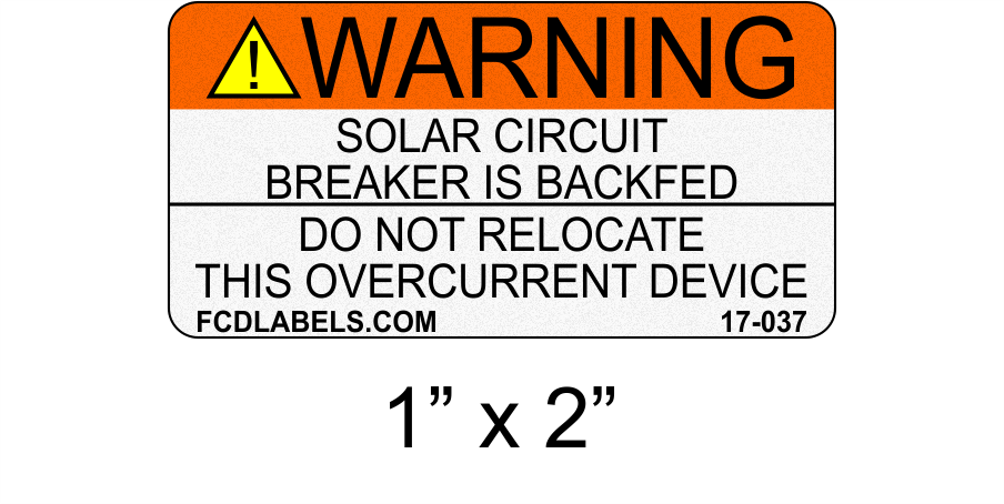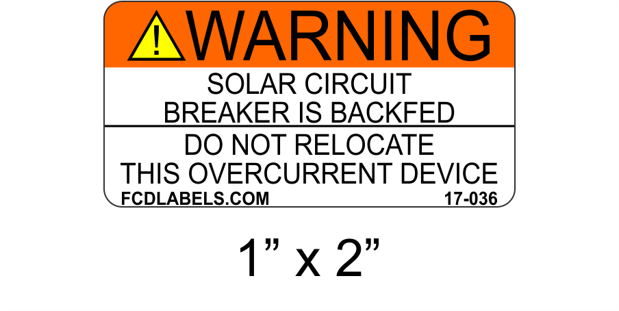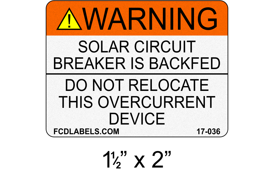 WARNING SOLAR CIRCUIT BREAKER IS BACKFED DO NOT RELOCATE THIS OVERCURRENT DEVICE